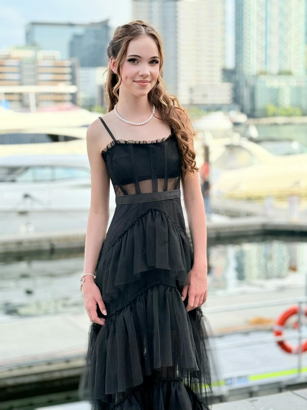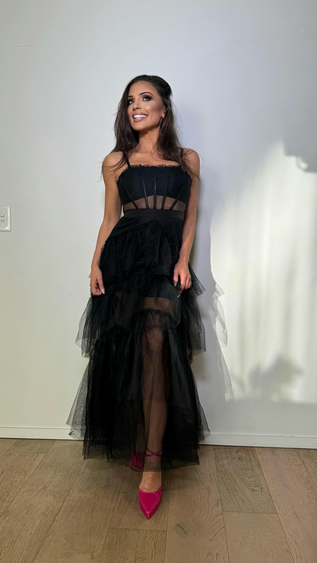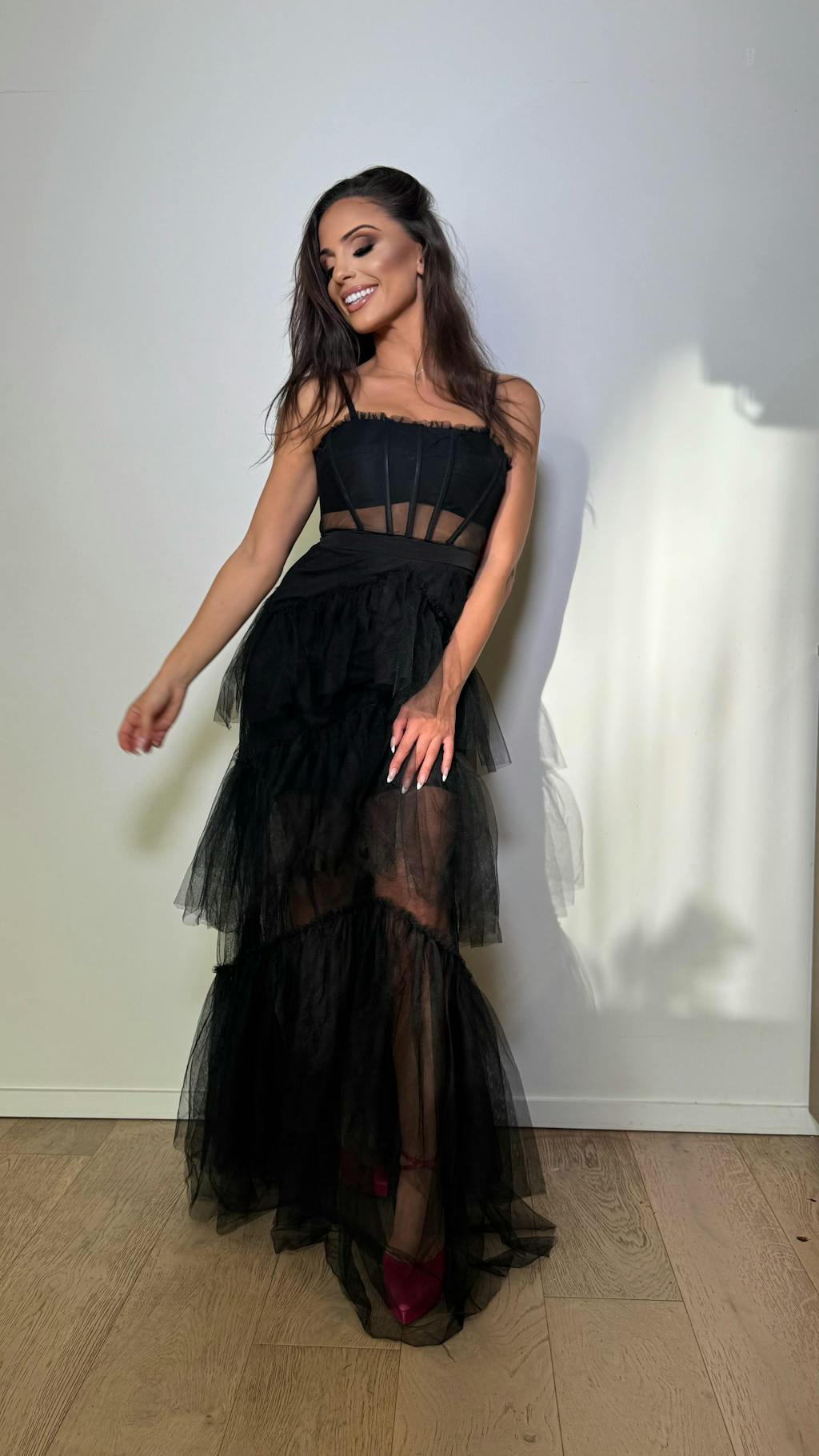 Astra is effortless elegance with a romantic edge. Designed in lightweight mesh with a softly structured bodice and tiered A-line skirt, this maxi moves beautifully with every step.