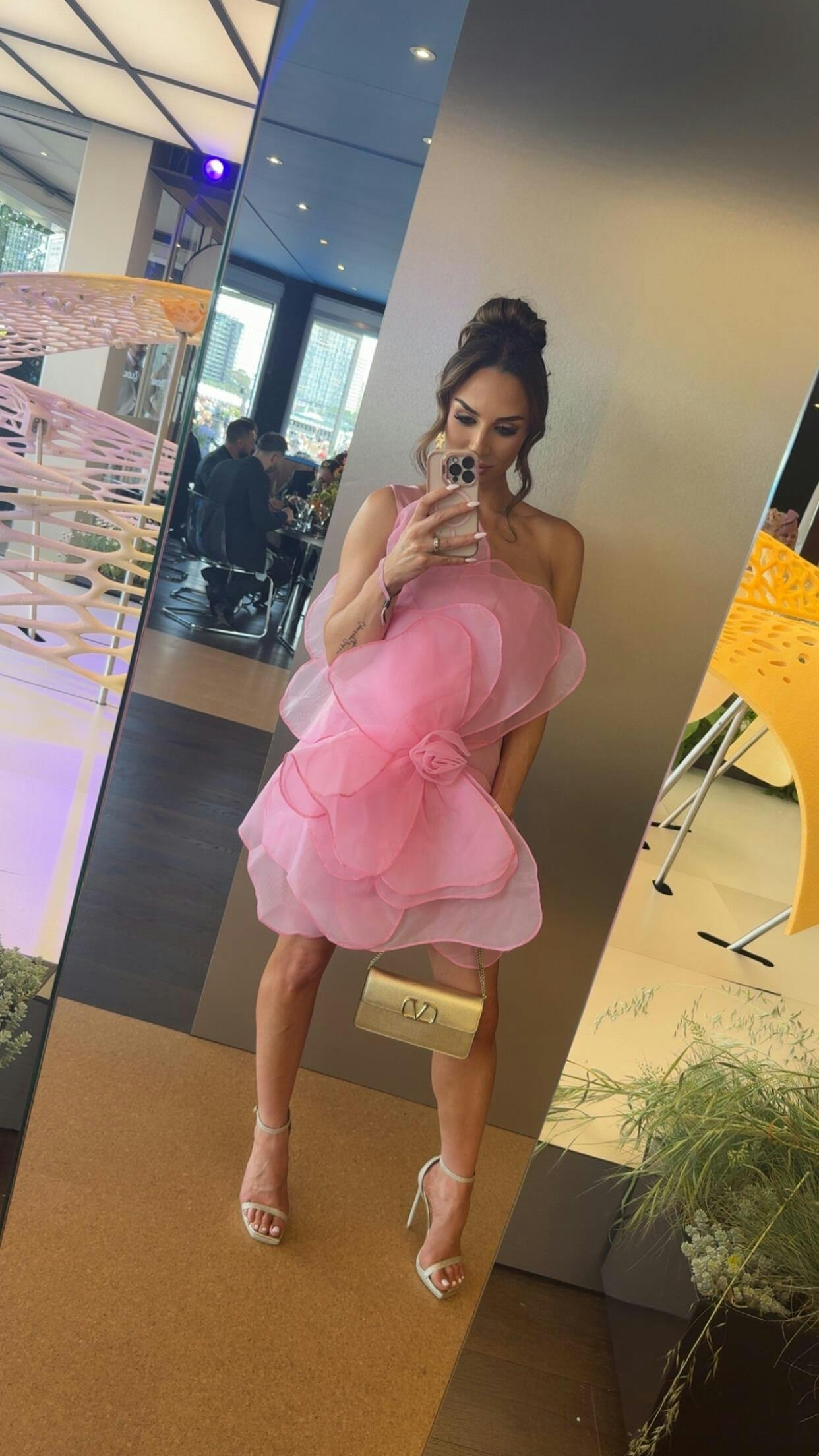 Nydia Strapless Mesh Flower Mini Dress - Pink