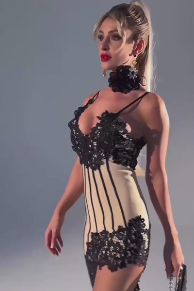 Effortless elegance with an edge — sultry but refined, the Lolic Dress is where structure meets softness. With delicate lace panels and a sculpting bandage fit, this midi is made to flatter your curves while keeping it sleek, sexy, and unapologetically feminine.