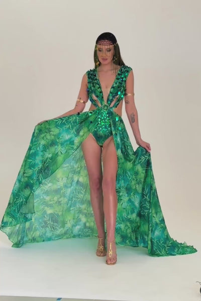 Step into tropical high glamour with the Yoland Dress — Styled Collective’s show-stopping J-Lo dupe that brings unapologetic confidence and bold, feminine energy to every event. Designed for the woman who refuses to blend in, this iconic silhouette combines a vibrant jungle-inspired print with hand-placed embellishments, sculpted cut-outs, and a dramatic thigh-high slit maxi skirt. The result is a statement piece that feels powerful, elevated, and instantly unforgettable.